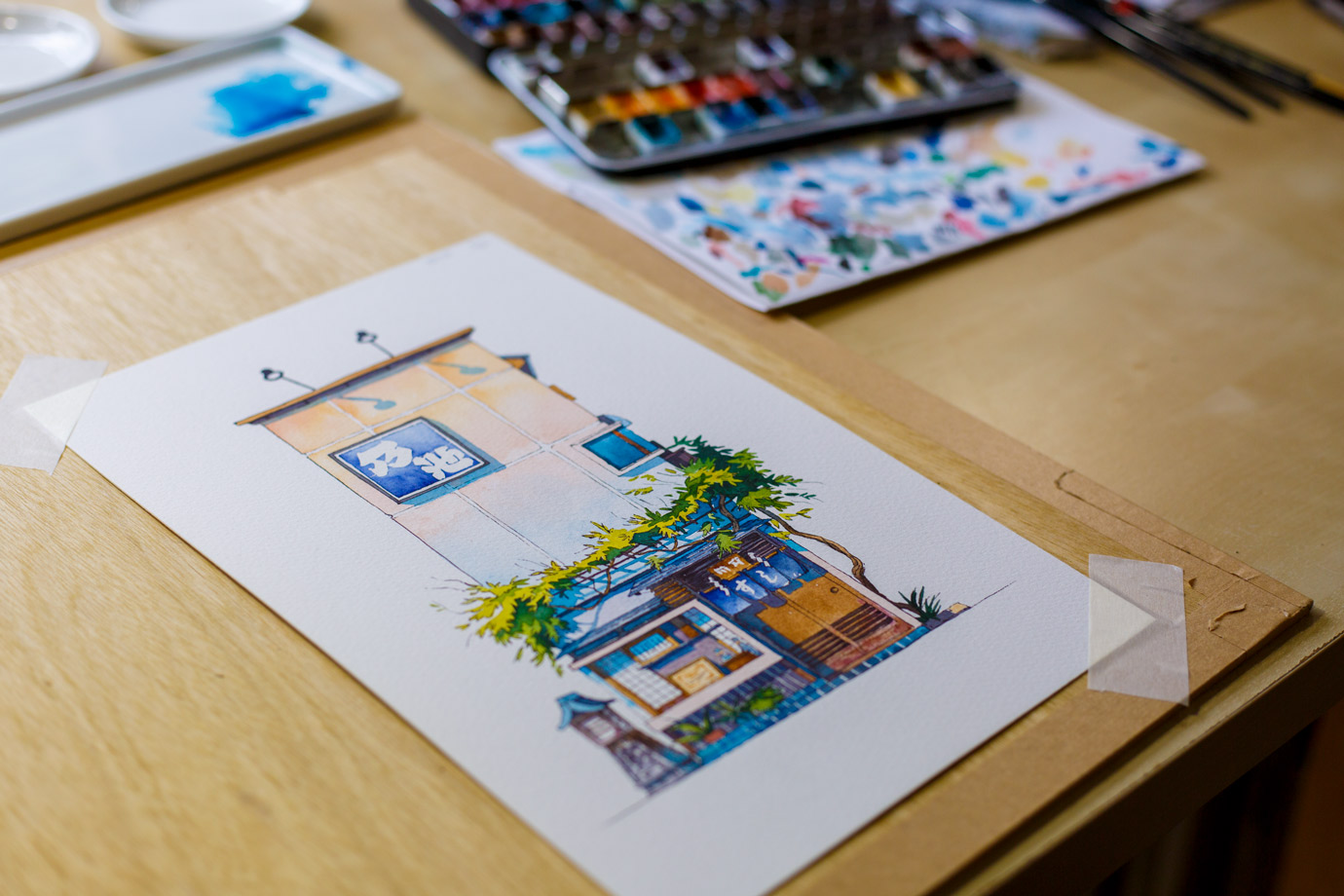 「我非常喜歡老舖復古、溫馨的感覺,《東京老鋪》系列來自於我對這座城市的熱愛。」Matt認為,這些飽含歲月痕跡的古樸商店,至今仍保留在原處,佇立於高樓之間,不免勾起了他的思鄉之情,希望能將此感受呈現於畫作之中。