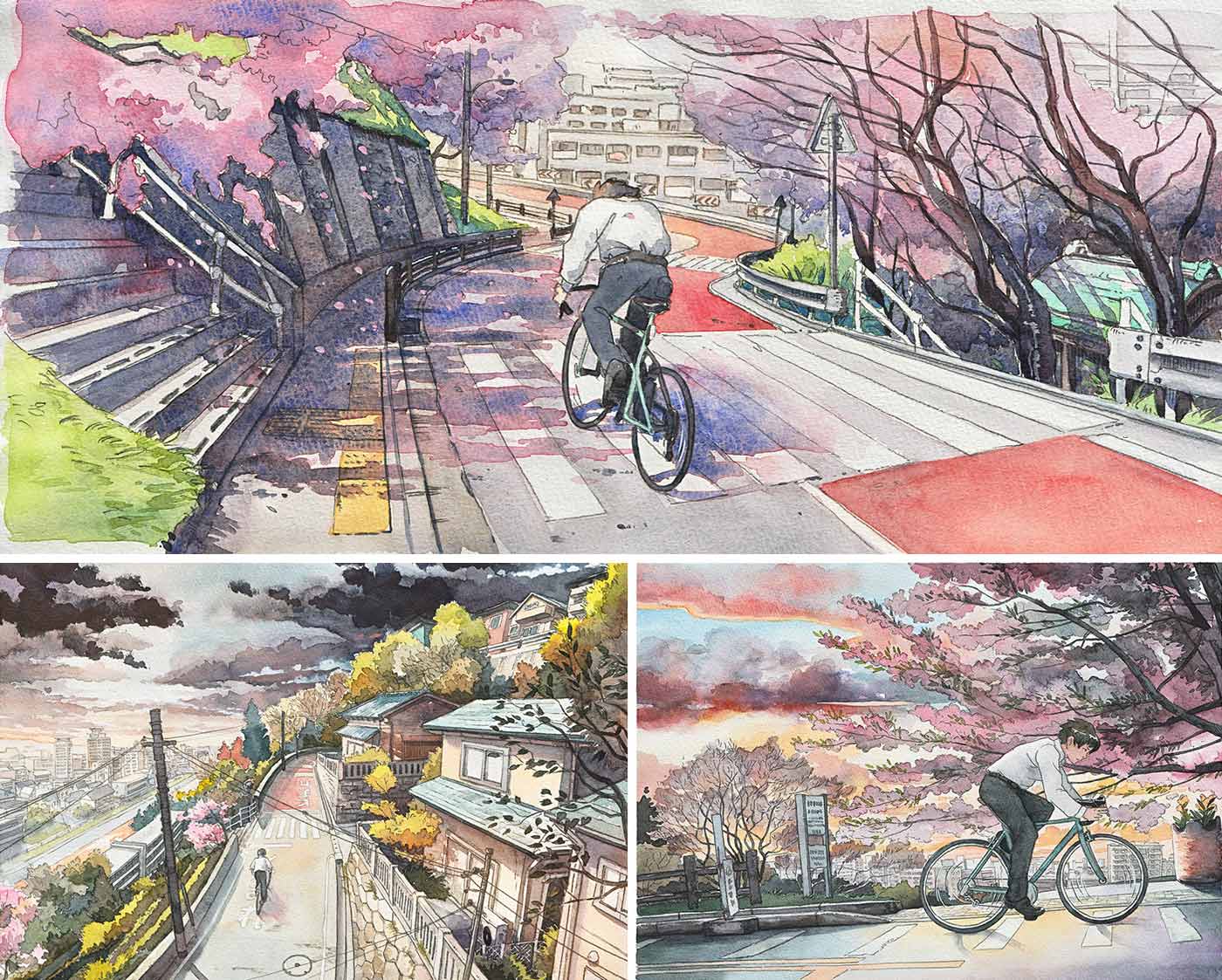 除新海誠外,Matt亦深受宮崎駿、今敏等大師影響:「尤其《藍色恐懼》,我認為是今敏最偉大的作品。」他更曾以前者的《心之谷》與《來自紅花坂》為靈感,創作系列插畫《Bicycle Boy》和《Cold In Yokohama》,透過水彩細膩描繪日本街景的美麗瞬間。