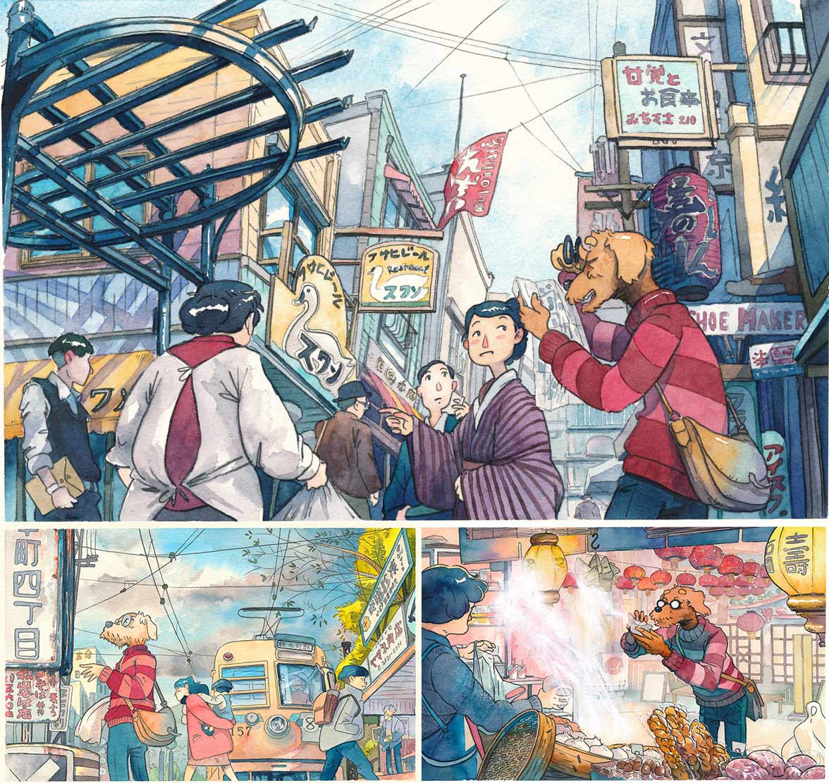 繪製插畫系列《Cold In Yokohama》時,為尋找宮崎駿電影《來自紅花坂》中的場景,Matt更實際走訪寒冷的橫濱街頭,畫中戴著眼鏡的狗狗即是他的化身。Matt說:「我把他當作我的頭像/吉祥物,想畫更多關於他的故事。」
