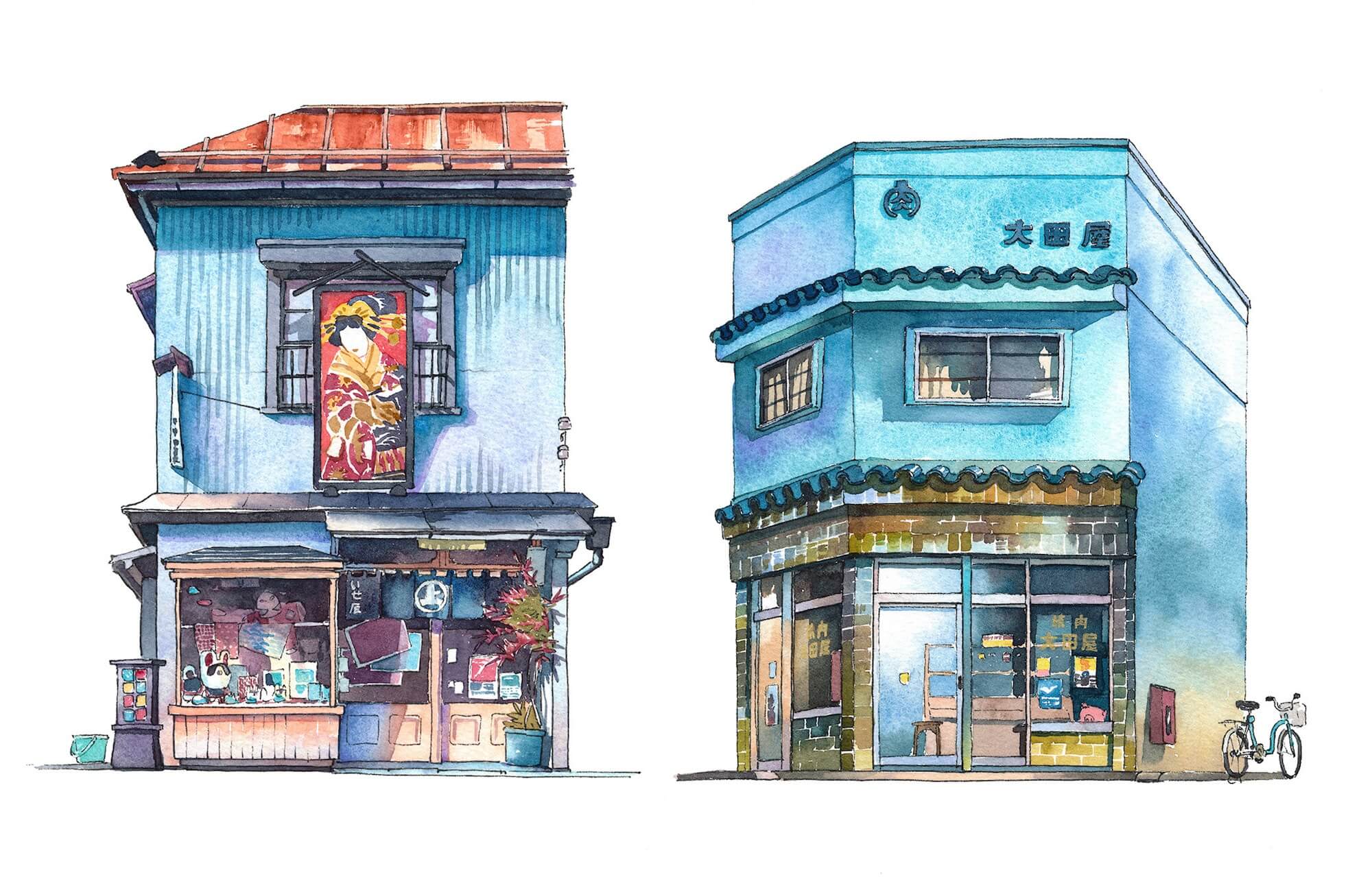插畫集《東京老鋪》,水彩東京街頭永存時代記憶