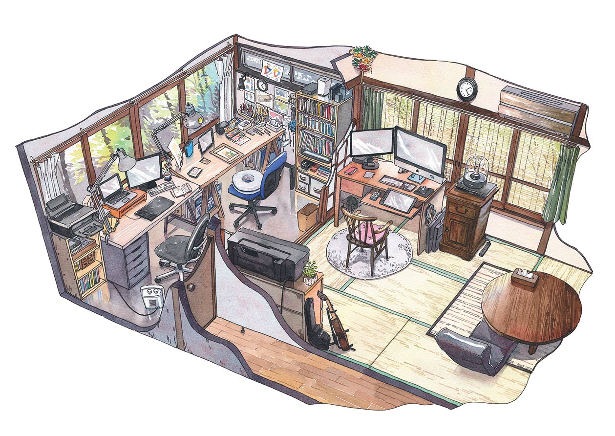 文內將分享他走上繪畫之路的契機、背景美術的工作,以及《你的名字。》、《花與愛麗絲殺人事件》等動畫電影背景製作過程。近期,他也將於台灣出版個人插畫集《東京老鋪》,以唯美繽紛的水彩線稿,潑灑出一幅幅逐漸被世人所遺忘的懷舊風情。