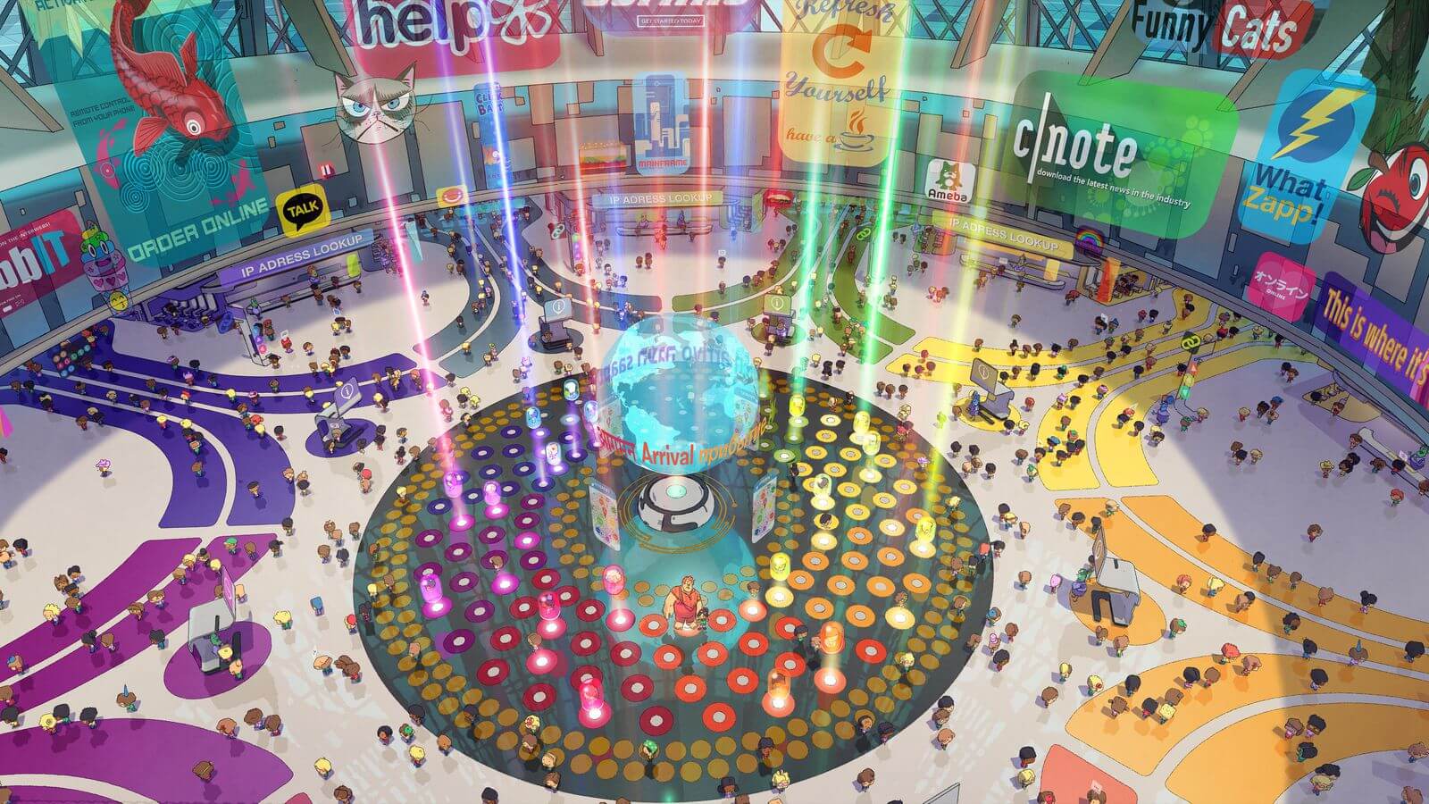 網民的移動方式,則是以圍繞類比積體電路設計,表現電子穿過光纖電纜的概念,Mathias Lechner解釋:「汽車顯示為立方體,就像一個像素,所有網路用戶都在旅行。」除此之外,若用戶在自動扶梯上的移動速度較快,則表示他的網速更快。