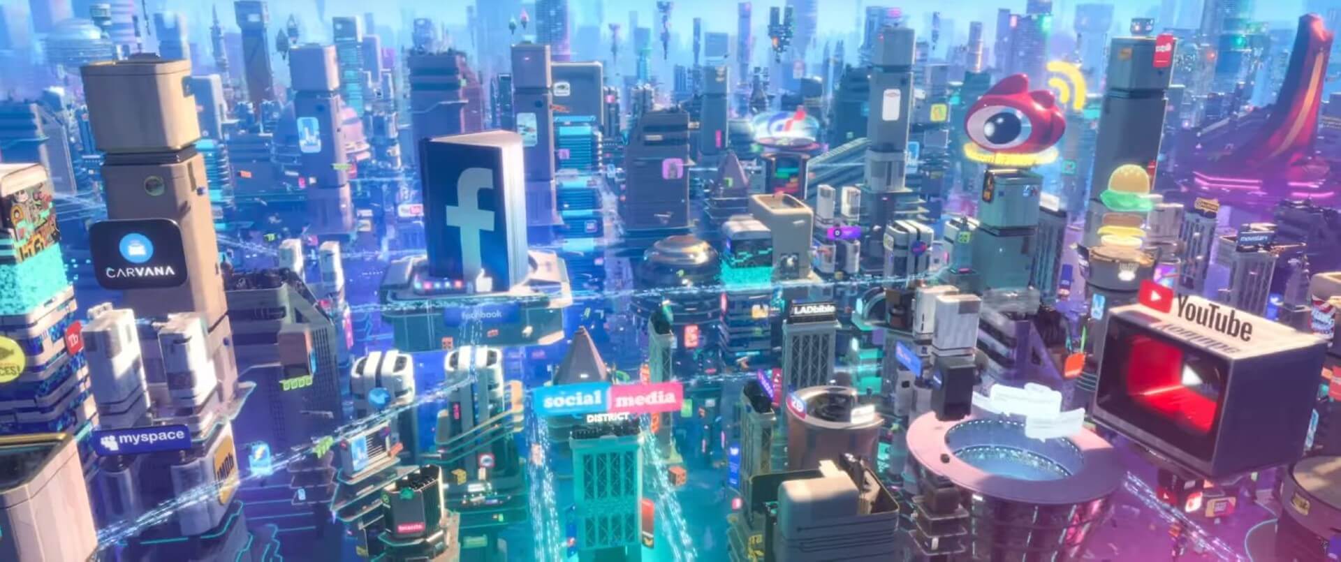「我們很早就決定將實際網站和想像網站結合,觀眾就能依自身理解投入故事中。」導演Rich Moore描述,除現有網站外,他們也設置自己的網站,如以YouTube為藍本創建的影音平台BuzzzTube,試圖讓觀眾覺得這些場景既熟悉、又與自身習習相關。