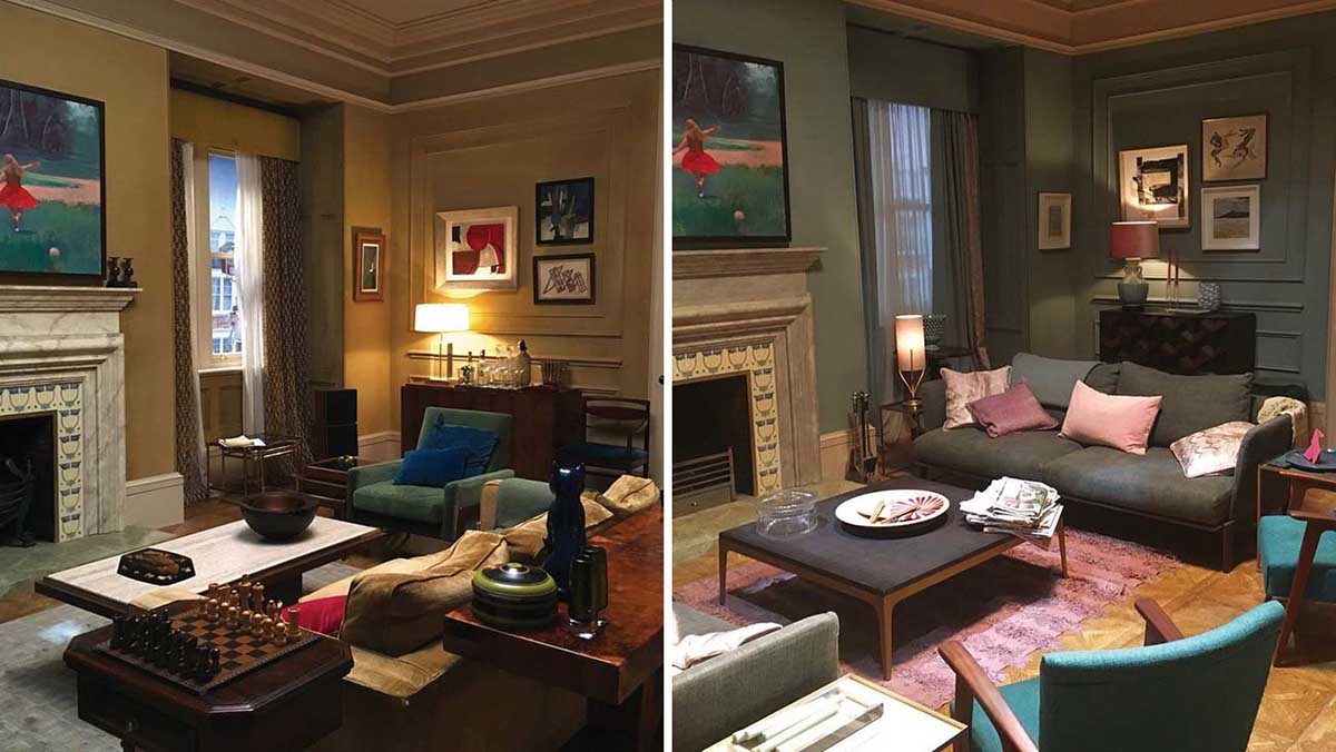 「我們審視過非常多種不同的配色樣本,甚至討論各種陰影顏色。」Francis說明,為了奠定不同場景的氛圍,劇組試驗過各種配色方案,最終決定分別以黃色調的赭色,呈現主角的豪宅公寓,以藍灰色調表現女兒的家,而護理之家則為清冷的藍綠色。