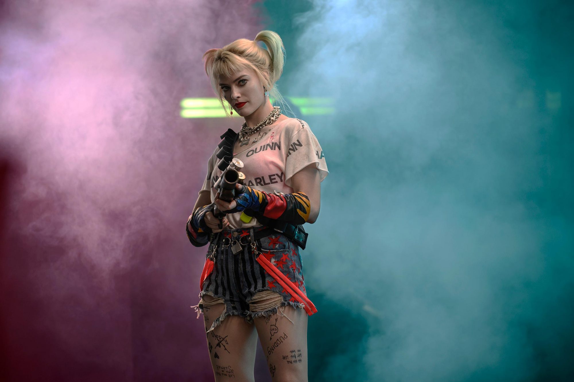 「她剛擺脫戀愛關係,我認為她的著裝會與和小丑在一起時有所不同。」瑪格羅比表示。Benach更為她設計了一件「印有哈莉名字」的白色T恤,而不是J先生的,並搭配條紋牛仔短褲和亮粉色運動內衣,以及適合打鬥的白色短靴。
