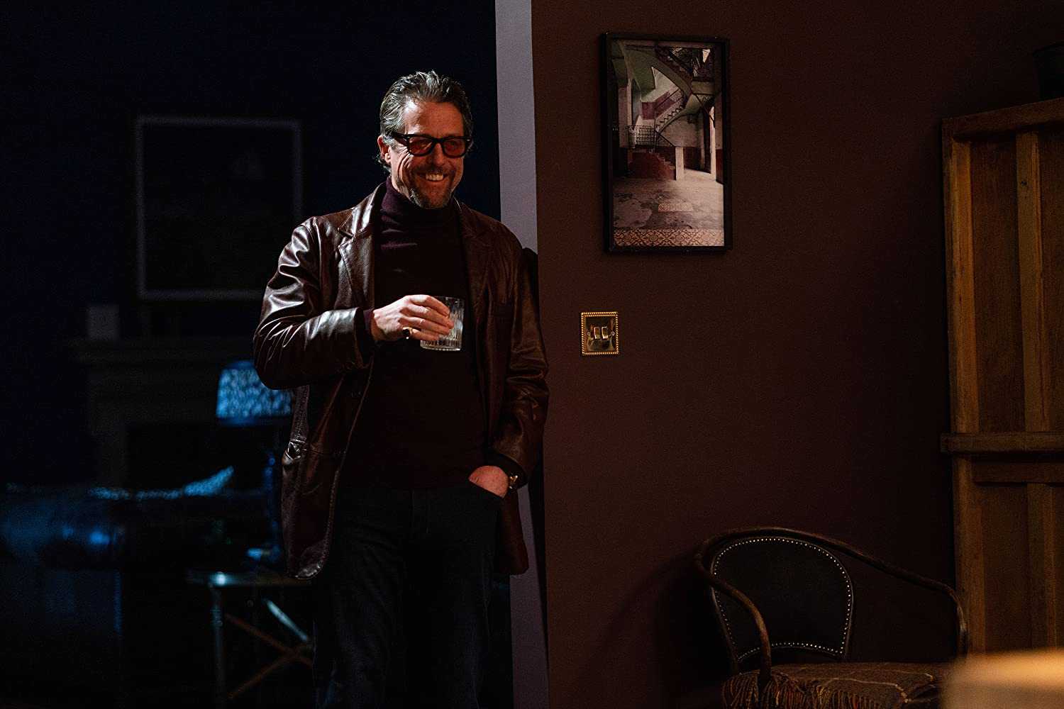 私家偵探Fletcher是主導電影走向的重要人物,其形象參考自1970年代的導演Federico Fellini(費里尼),透過仿舊皮衣、高領毛衣,還有鱷魚皮靴,流露高深莫測的氣質;其中,他臉上的RayBan折疊式太陽眼鏡,更特別選用紅棕色調的鏡片,同時帶有一點紫灰色陰影,勾勒他狡猾、多疑的性格。