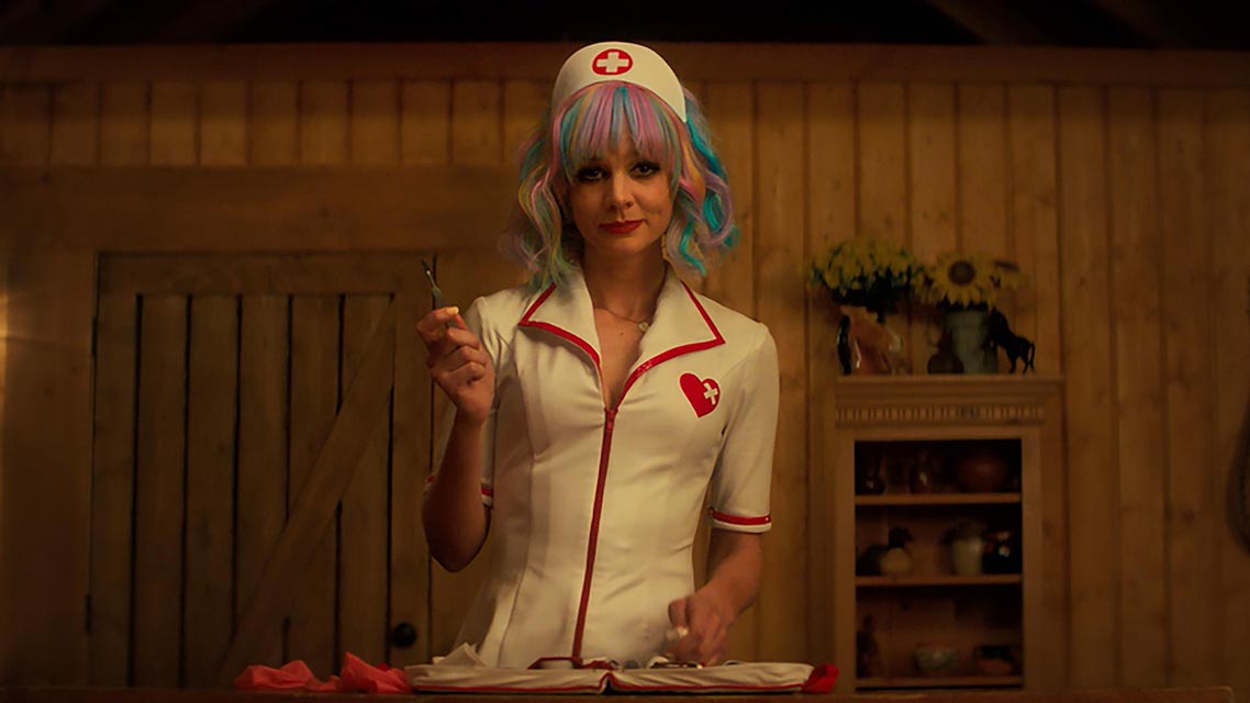 主角進行最終復仇時,為了潛進復仇對象的單身派對,她不但換上性感護士服、頭戴彩色假髮、嘴塗深紅口紅,眼睛部分更畫得巨大而恐怖,整體外觀相當浮誇黑暗,是Wells耗費最多心力設計的妝容,她解釋:「主角此時正在向這個世界投射某種信念,但內心非常難過和失望。」