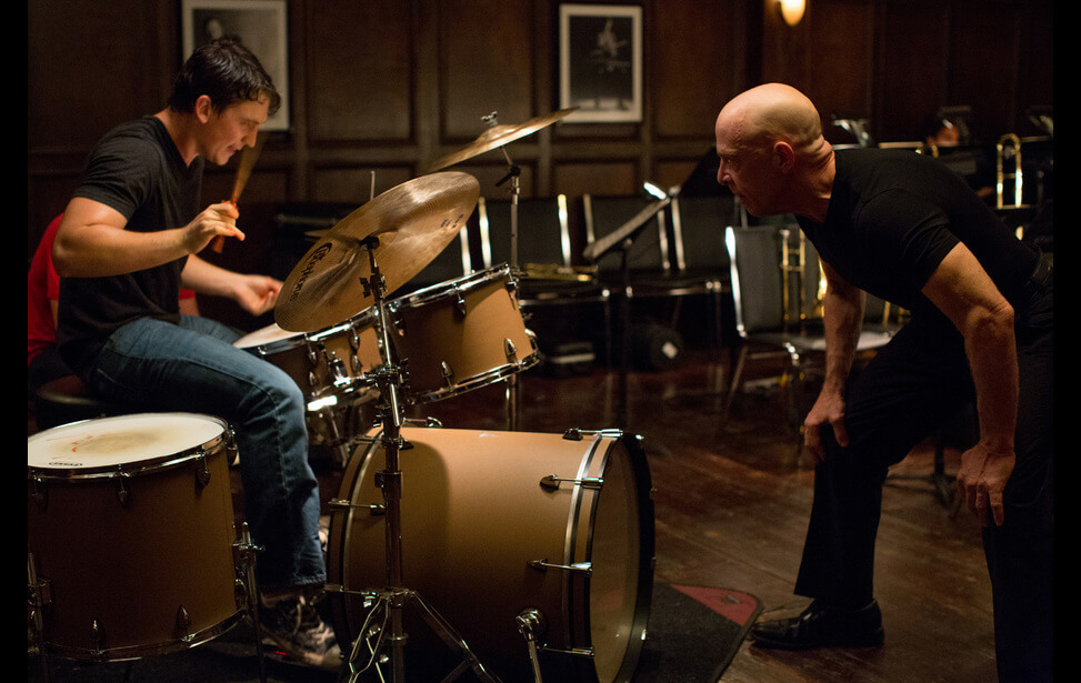 《進擊的鼓手》,描繪渴望成為頂尖鼓手的Andrew、與嚴苛的爵士樂團指揮Fletcher,在追求完美音樂的道路上,兩人間的角力拉扯;整部電影裡,一連串事件皆圍繞敲擊的鼓聲展開,並於尾聲以彼此報復般的演奏,激盪起全劇的高潮。