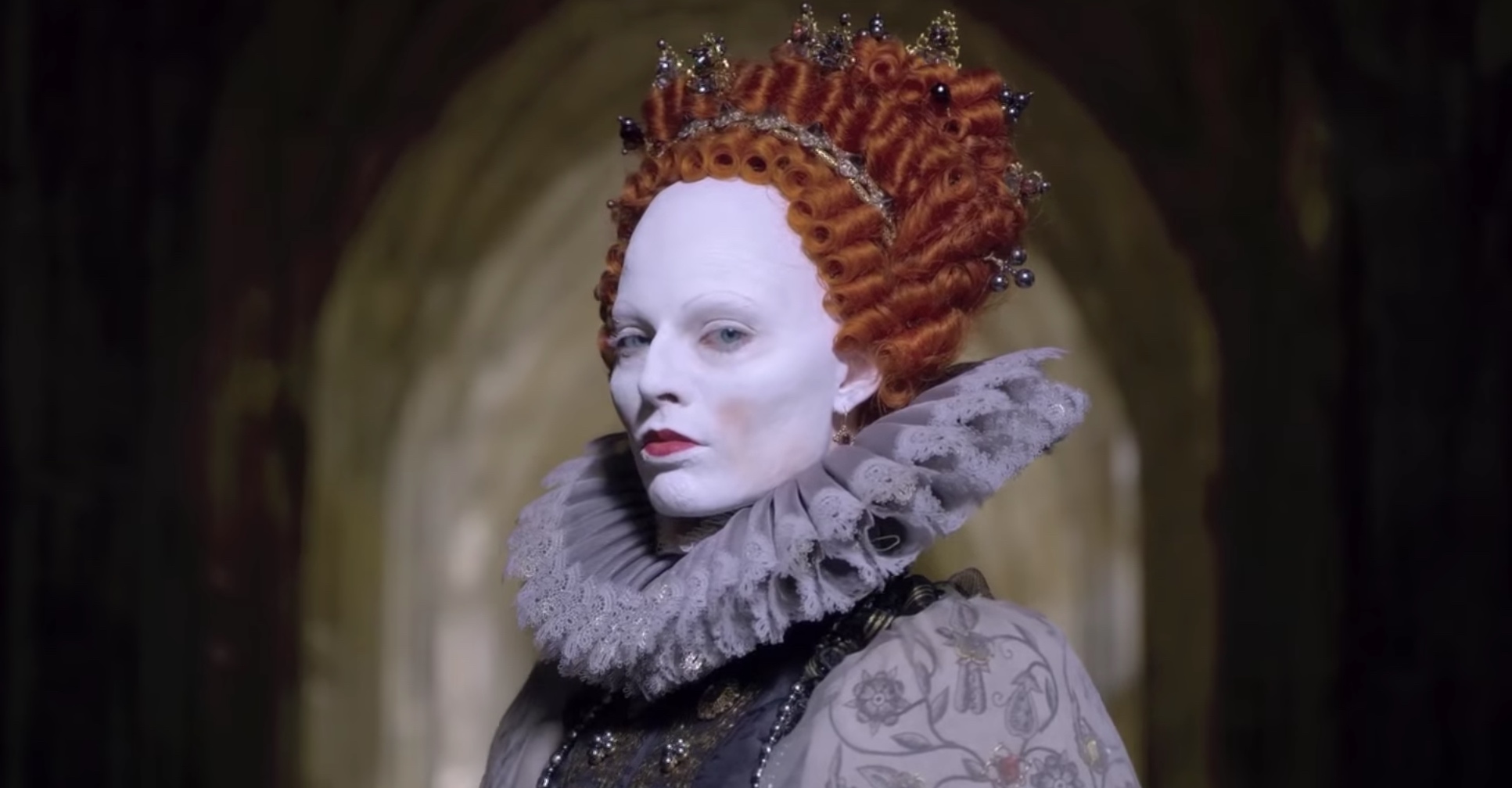 伊莉莎白染上足以毀容的天花,面對逐漸凋零的美,與瑪麗的繼承威脅,她的妝更代表一種武裝,Shircore 表示:「(導演)Josie 想要傳達權勢的意涵,伊麗莎白臉上的白色塗料是我們所能畫上最重的面具,關於權力的面具。」
