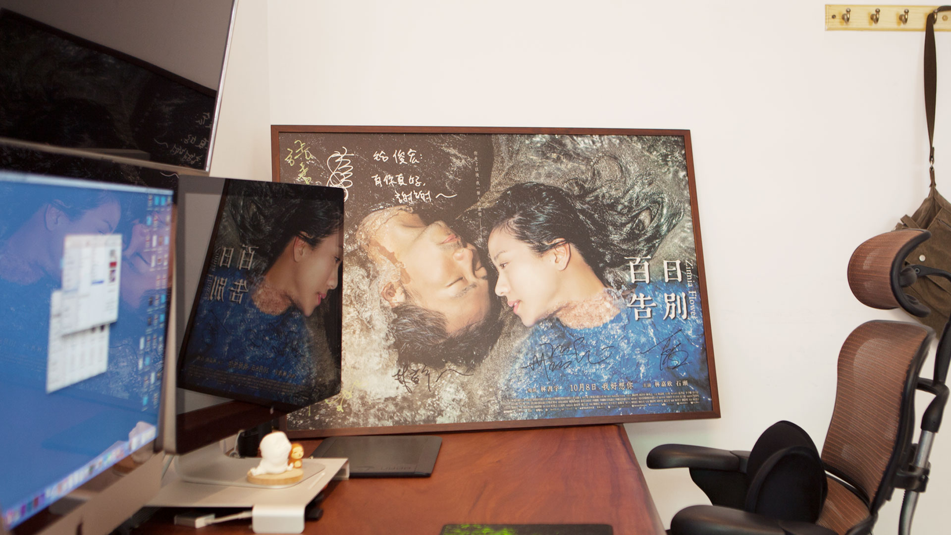 俊宏喜歡獨立作業,暫時沒有聘請助理的打算,在離家近的住宅區,租了一間小套房佈置成工作室,有一張很大的木桌以及性能良好的工作椅,椅子上還有楊雅喆導演送的護腰靠墊,但他笑說用不習慣。