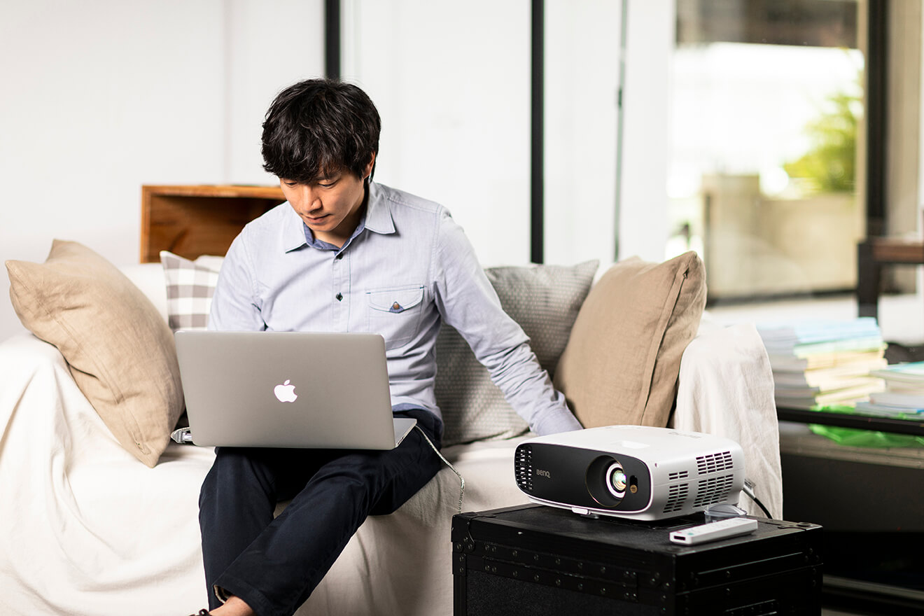 但他強調,使用投影機看電影時,若可以的話,最好加裝投影幕,呈現出來的畫面才夠細緻。「牆壁的顏色不是純白,多少會影響影片顏色。且可能不夠筆直平坦,會有突起或瑕疵,除了顏色、焦段會跑掉外,整體構圖也會不夠精準。」透過平整白牆觀看影像,視覺效果可能是70-80分;但加上投影幕後,就能100%發揮W1700投影機的實力。