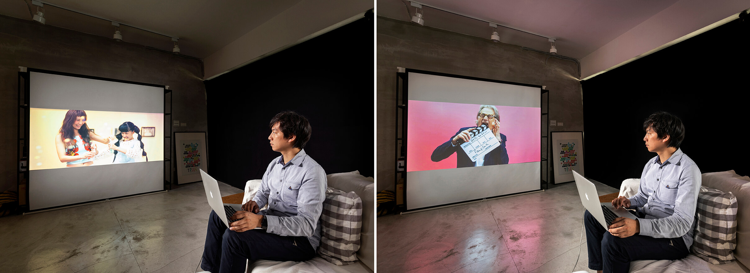 「我們公司都是使用蘋果電腦,螢幕本身就會基本校色,我們也會定期校色。所以當看到W1700投影機投出來的顏色,和我們螢幕上看到的顏色十分接近時,真的有驚豔到。」他說:「這對我們在跟客戶溝通或在交片時,有很大的幫助。」