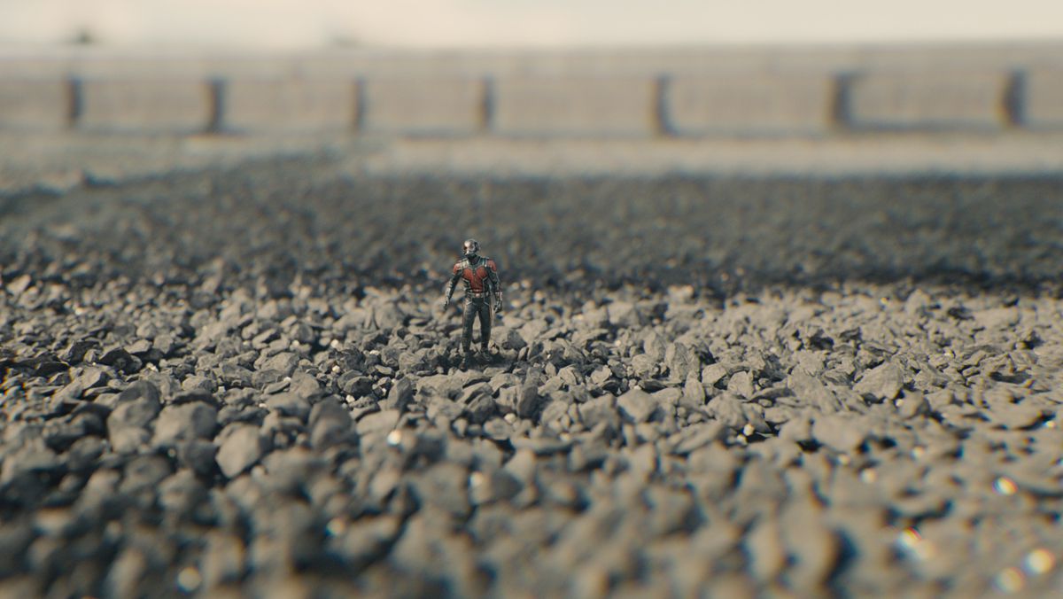而除周遭環境的細緻表現外,拍攝人物時的角度選擇也很重要。視效總監Jake Morrison解釋,為確保蟻人在畫面中的渺小,攝影團隊皆採以極仰角、或極俯角的方式拍攝,呈現人物正處於浩大場景中的視覺錯覺。「這和拍攝孩子們的道理一樣。」