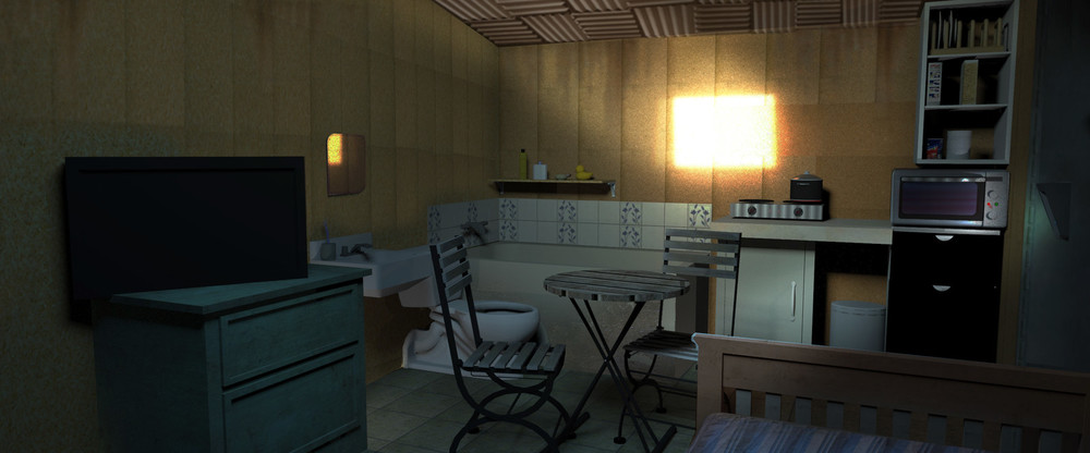 對於光線變化的研究,藝術指導Tobman也毫不大意,他使用軟體3D Studio Max,模擬光從不同方位打入的效果,還將小屋定位在俄亥俄州不同地點,依照劇本設定的季節,測試白天陽光灑在屋內的光影變化。