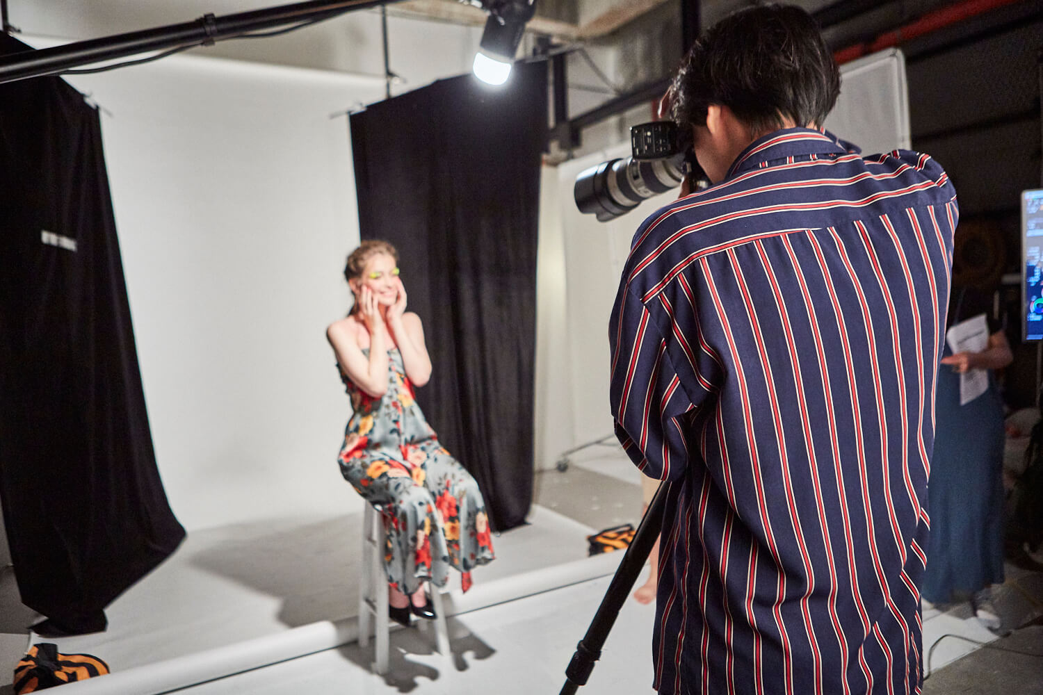 第二天課程,我們邀請到俄國模特兒Masha,讓學員體驗人像拍攝的魅力。川宏老師規劃兩組拍攝,一組為時尚雜誌半身照,一組則為彩妝雜誌的臉部特寫,讓學員能親自掌鏡、指導模特兒,學習如何成為一名「專業攝影師」,掌控現場棚拍情況。