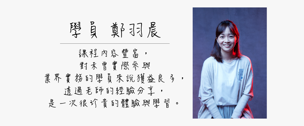 川宏老師笑著和學員們分享,攝影師不僅只是「按快門」而已,更要懂得注意現場「細節」。如:光法是否能修飾模特兒?服裝及妝容的顏色搭配是否得宜?而每個鏡頭裡的枝微末節,都是平面攝影成功的關鍵。
