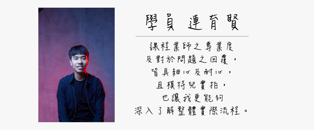 「人像攝影零距離 - 第一步: 用光來拍照」兩天課程,於上週圓滿結束。DC FILM SCHOOL 影製所 團隊再次與楊川宏老師合作,帶領學員認識基礎打光手法,首創「沉浸式攝影課程」,模擬業界攝影棚的工作型態,安排各式實作練習,讓學員得以「沉浸」於專業攝影環境中學習。