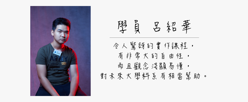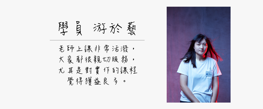 川宏老師於課堂間,說明攝影師的三大工具:光線、光圈、快門,也仔細介紹不同光質、光量及光線顏色對影像的影響。同時,他更親自實作示範,如何透過調整燈光面積,運用描圖紙、色彩玻璃紙等介質,造成光線的軟硬差異。他說:「懂得控制光線,你就可以將一名少年的形象,從剛毅變成柔和。」