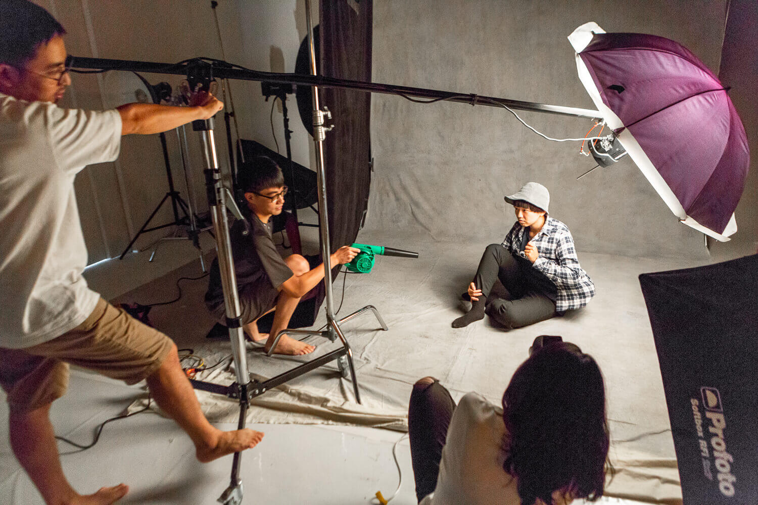 拍攝時,光線的運用也需懂得臨機應變,川宏老師說:「燈可以有任何奇形怪狀的組裝方法,你可以創造出屬於自己的光線。」他舉例某次拍攝時,怎麼調整燈具,環境看起來還是過暗。「於是我們把一盞燈,架在地上往地面上打,以反射光源的方式,模仿自然光的效果,結果就成功了。」
