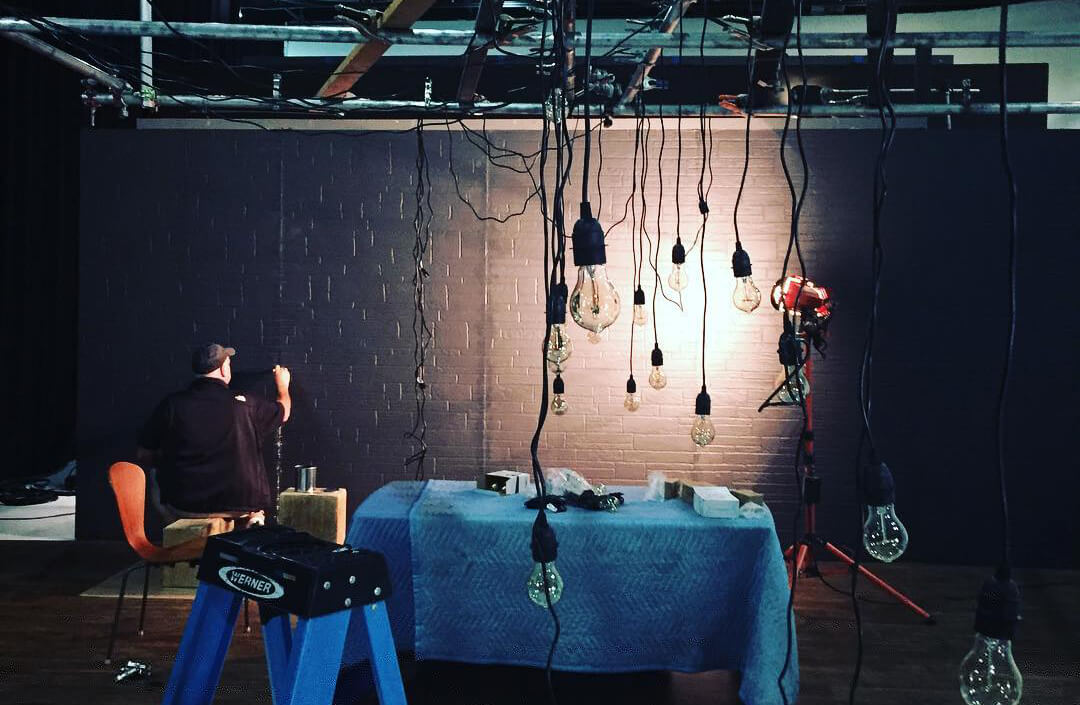 原定劇組將佈景架設於棚內較寬敞的一側,以柔和的側燈照射「燈泡」廣告牆上,呈現燈泡的玻璃質地。但他和藝術總監Bret Lama將佈景的牆面「移轉」90度至棚內中心,讓光源不僅直接照射至牆面,還會照射到兩側的無縫牆(英文為Cyclorama wall,為壁面與地板間具有彎角的牆面,在攝影時可避免不自然的牆角陰影),再反射到牆面,製造出柔光的效果,產生更具質感的光線變化。