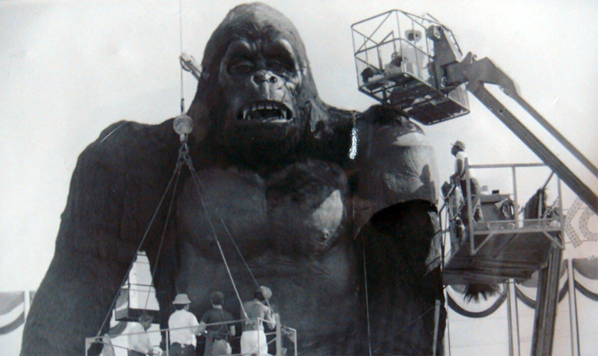 然而,製作團隊在無電腦特效的年代,往往只能透過定格動畫、模型、人偶裝等方式,讓超現實的巨大金剛躍上大銀幕。而1976年版本的《金剛》,更由特效師Carlo Rambaldi,打造出12公尺高的「機械大猩猩」,以及獨立的機械手臂,好讓女主角能坐在金剛的巨掌上。