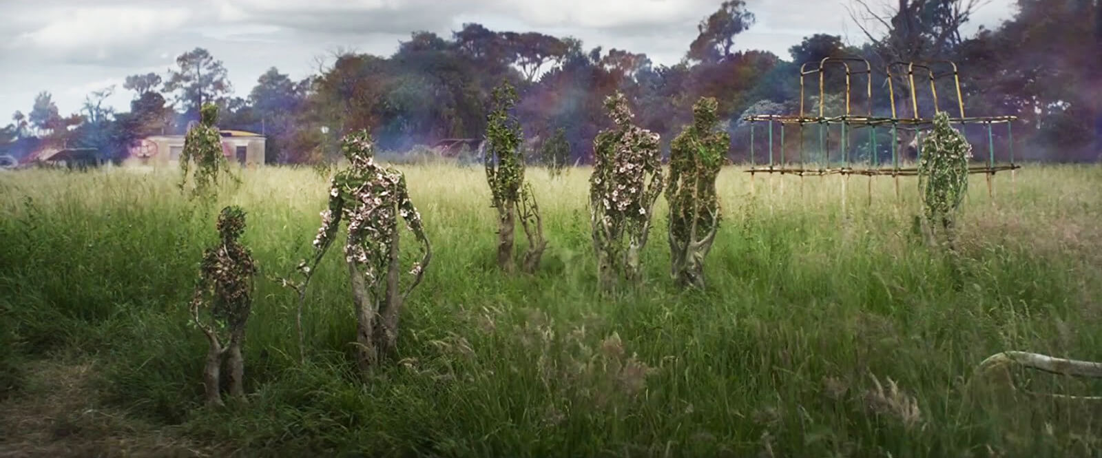 陳設師Michelle Day參考車諾比、福島核災後的植物型態:「它們在事故之後,開始扭曲生長,而我們複製了這一點。」他們製造部分植被的枝幹,蒐集從英國溫帶樹林、到美國南部沼澤的各式花葉,透過特效後製成各式「怪奇」的植物。