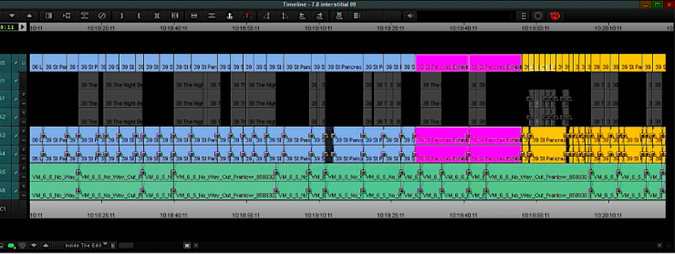 以下是一部影片在時間軸上的變化。 藍色片段表示稍慢的開頭速度,橘色片段則為高潮迭起的快節奏。 而粉紅色區塊之所以為最慢,則是為了強調發生戲劇性轉變的時刻。