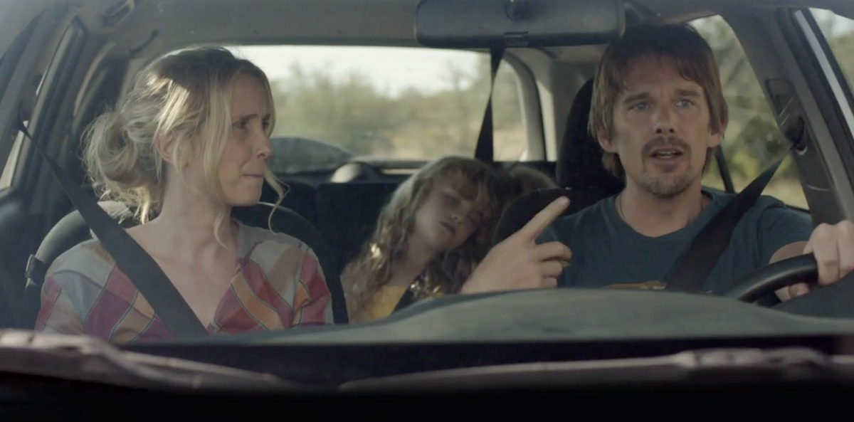 擋風玻璃前鏡頭(Front windshield):不管使用廣角鏡頭或望遠鏡頭,車輛內的駕駛、乘客和窗外風景,都能被完整拍攝進畫面,並呈現演員的位置關係。這個鏡位除適合拍攝車內場景的主鏡頭(Master Shot),也能鎖定個別人物,從同一個位置捕捉不同演員的神情。