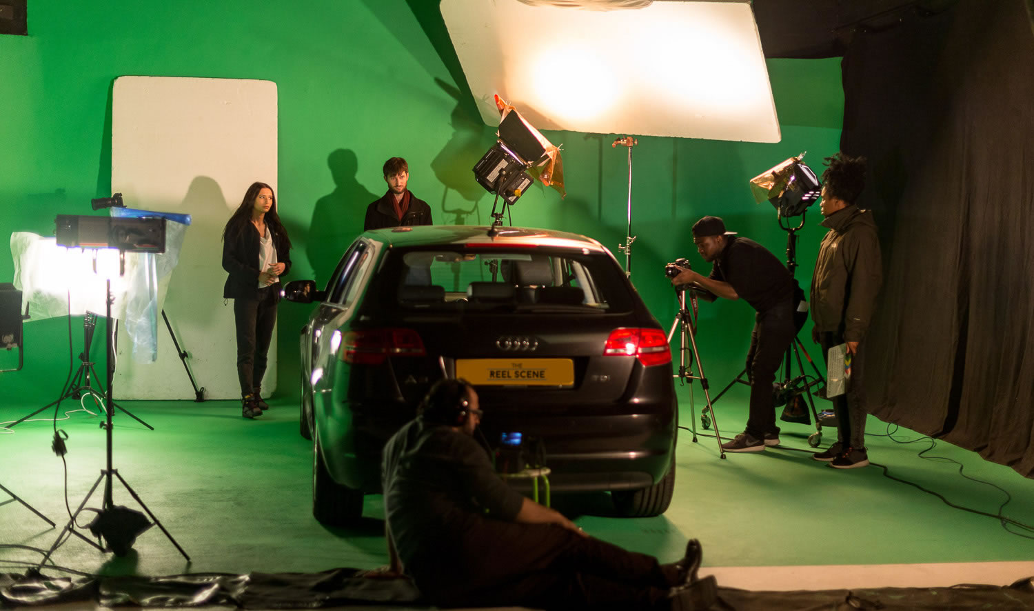 棚內拍攝,是將車輛放置於攝影棚內,搭配背景合成、光影變化等技術,讓畫面看來逼真可信。由於不受外在環境干擾和限制,棚內拍攝可更有效控制畫面,掌握收音品質,同時讓演員和工作人員,都處於安全的環境之中,減少意外發生的機會。