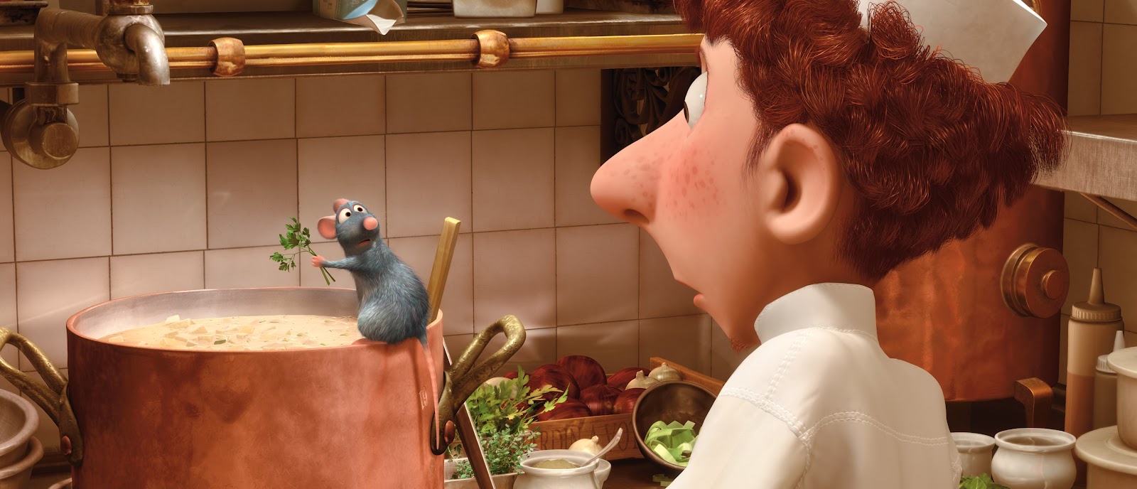 5. 色彩部門:關於整部片的色調掌握,像是料理鼠王的攝影指導會在陰影處加一點紅色,畢竟這是一部關於食物的電影,所以這樣的方式會讓整體色調看起來像是沾上一層巧克力一樣的好吃。