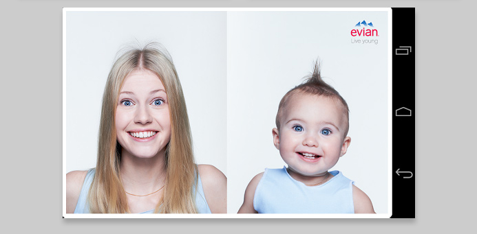 為了使消費者更深刻感受「每個人心中都住著一個嬰兒」的概念,Evian與B-Reel合作推出Evian baby&me APP,會針對上傳照片的臉部特徵,模擬出你的Baby版本。