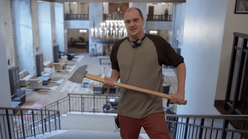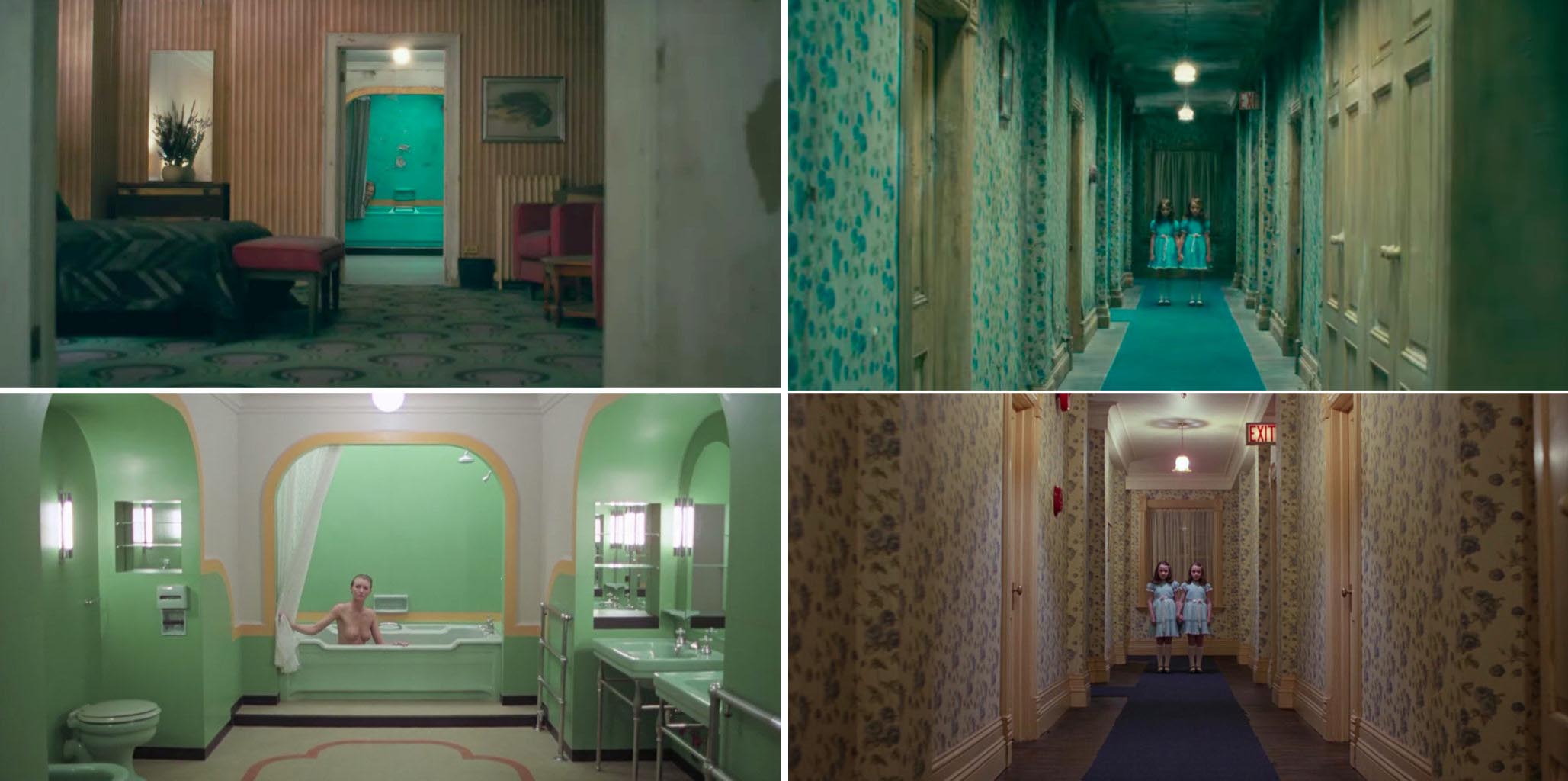旅館皆為實景拍攝,僅有天花板進行CG處理,避免頂燈穿幫。而除場景重建外,劇組也參考了前作的攝影機位,某些特定橋段更以相同視角拍攝,藉此向庫柏力克致敬。「全景飯店在我們腦海中建立了這個空間,這就是庫柏力克的力量。」