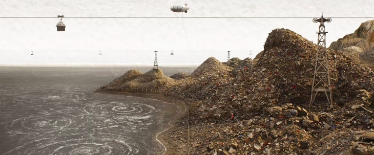 一般來說,縮小的場景模型,會以木材、顏料來製作,但《犬之島》有許多垃圾場景,佈景團隊使用更加「有機」的方法,像是以真正的垃圾碎片製成。