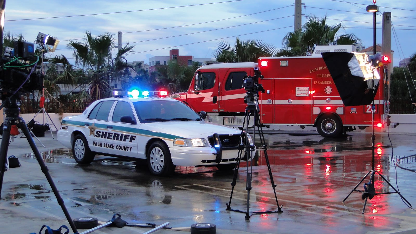 「水壓的控制」也不可馬虎,儘管使用的灑水設備相當高科技,也要確認是否能有效控制水流大小。另外,維持道路、車子或建築的潮濕感,能適當提升影像的陰雨氛圍,連人物也應配合淋濕,才能使整體感覺更為一致,營造「正在下雨」或「剛下過雨」的效果。
