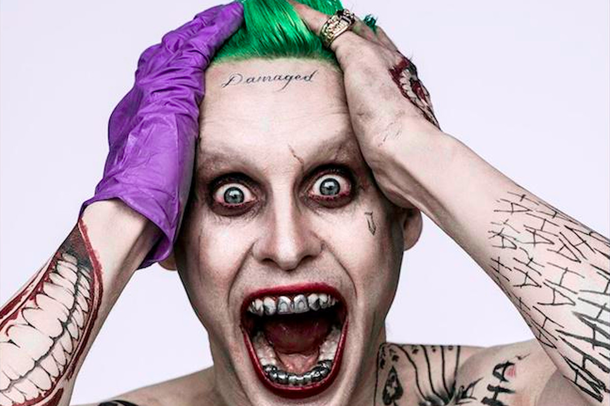 而小丑滿嘴銀牙與額頭上的「Damaged」刺青,也是導演 David Ayer 的想法,他表示:「我的想像是,蝙蝠俠因為小丑殺了Jason Todd(羅賓)而打爛他原本的牙,將他關進阿卡漢精神病院,後來他用『Damaged』字樣的刺青向蝙蝠俠傳達『我本來很完美,是你毀了我的臉』的訊息。」