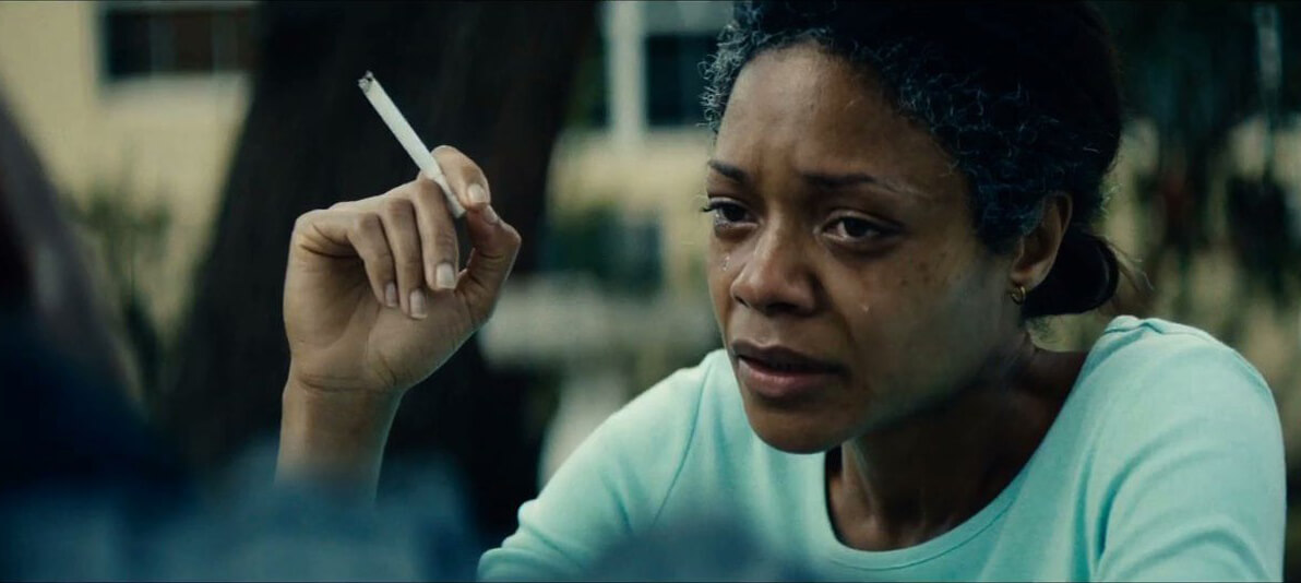 《月光下的藍色男孩》裡,主角母親Paula長年服用毒品,導致外貌在其不同年齡階段,相較同齡者更顯得不健康、且更加老化。劇情第二段落「Chiron」中,Paula已成癮多年,處中年歲數,化妝師Doniella Davy運用半透明凝膠,鋪設於演員臉部,再以黃、紫與藍色塗料塗抹,呈現不均勻的膚色,並補強斑點、靜脈紋路。
