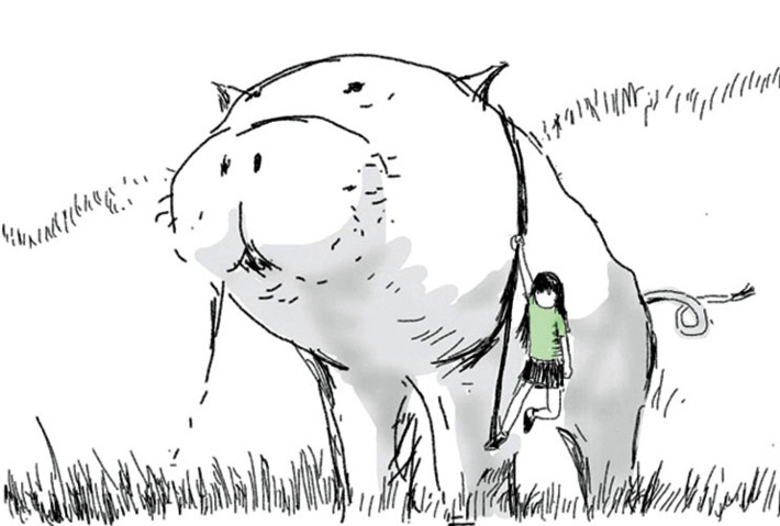 Okja必須是很巨大的動物,看起來非常和善、內斂,而且看起來有點憂鬱,