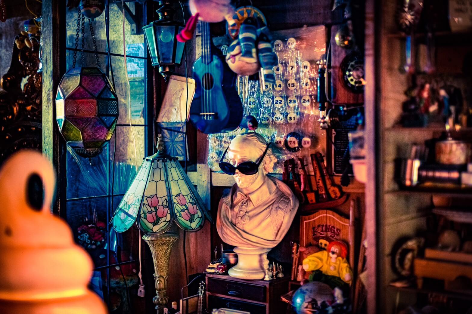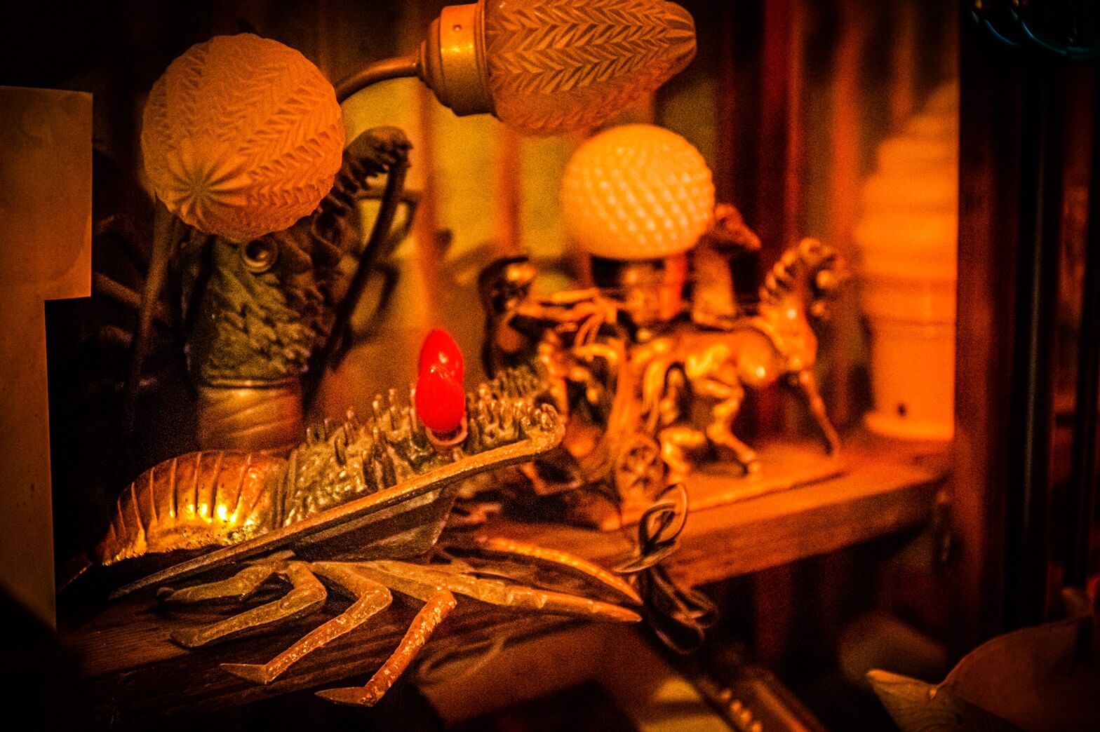 像是其中一盞龍蝦燈,有著細緻入微的雕刻紋路,是電影《角頭》中,拍攝黃昏市場時的佈景道具,他分享:「我們針對環境需求、年代,找出共鳴性高、視覺上比較快速留下印象的物品,因為影像中每一個場景出現的時間,其實真的都很短暫,所以我們會去找視覺上比較強烈、比較突出的東西去佈置。」哪怕在司空見慣的場景中,都必須投注大量而細膩的美學能量,烘托故事韻味。