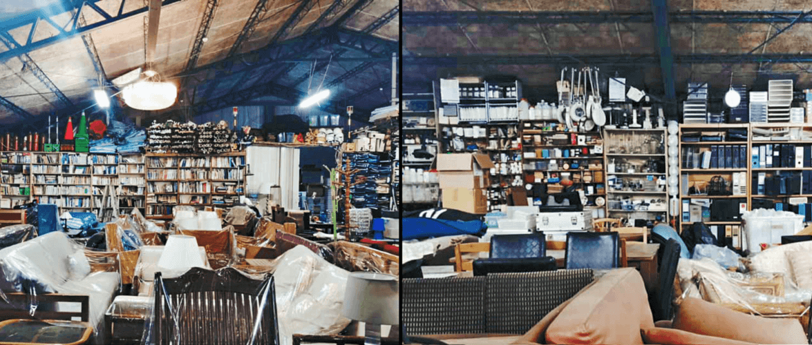 美術資源後援中心AF Resource Studios,座落在一條不起眼的巷弄,巷弄口是一條大馬路,兩側則是汽車維修廠,向巷子裡邊搭建鐵皮屋,看似無盡延伸,誰想得到,盡頭處竟有間大寶庫,堆放著數不盡的佈景道具,這間200坪大的倉庫,實由美術設計洪琮茗,集合大家的力量,逐步累積而成。