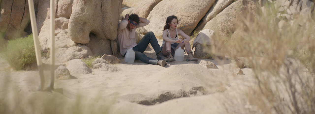 跟之前介紹過的長廊打鬥片段一樣,短片其實非常強調影像的敘事,甚至不使用台詞,也能達到戲劇效果。在敘事手法上,選用倒敘,過去式與現在式交錯剪接,層層撥開故事,且沒有使用對白,觀眾必須看到最後一個鏡頭,才能理解故事全貌。也因此在鏡頭的使用上面,導演Kosinski選用全片幅的變形鏡頭搭配攝影機,因其在散景或是變焦的時候,變形鏡頭並不像球面鏡頭銳利,較能把焦點放在角色的個人特質上面,給予影像呼吸的空間,而其廣角效果,在拍攝短片中的沙漠場景,也非常有意思,